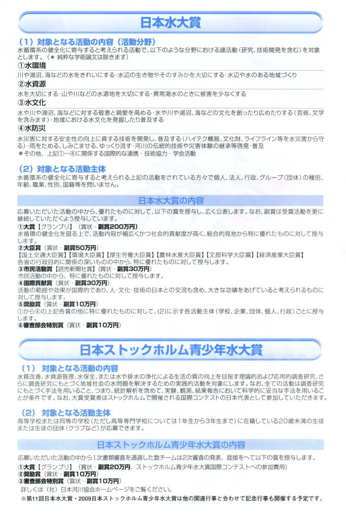 | 自然の健康を支援する基金、賞金、事業などの御案内 |